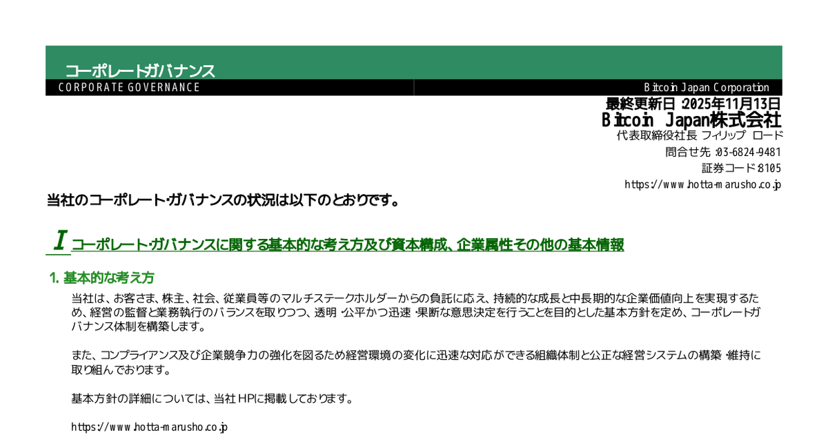 비트코인 재팬의 2025년 기업지배구조 보고서는 기업의 투명성과 책임성을 강조하며, 다음 주요 요소를 포함한다: